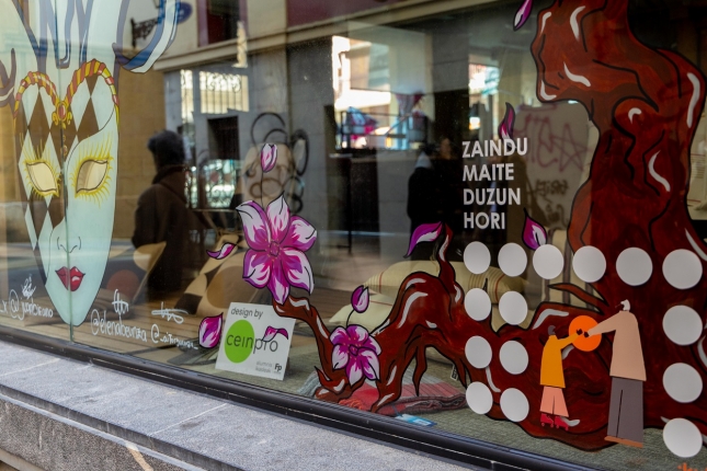 Con motivo de los carnavales, el alumnado de Diseño de Ceinpro ha convertido los escaparates del comercio de la Parte Vieja en una auténtica galería festiva, en colaboración con la Asociación Zaharrean.